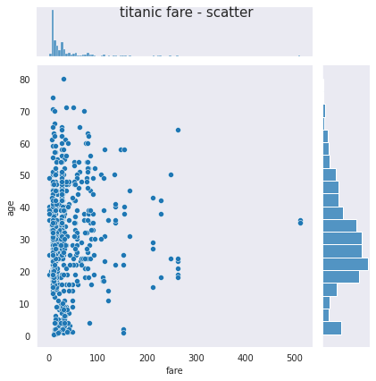 j1.fig.suptitle('titanic fare - scatter', size=15)
