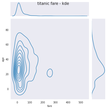 j4.fig.suptitle('titanic fare - kde', size=15)